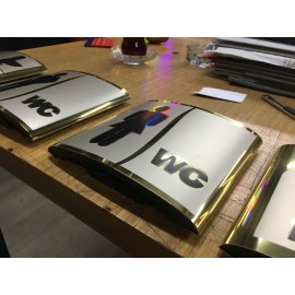 Bombeli Kapı YönlendirmeBombeli Kapı Yönlendirme 15x15 cm ölçülerinde krom gold parlak kapı isimlik üzerine kumlama üzeri siyah folyo kesim.15x15 cm, 20x20cm , 25x25cm..