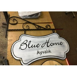 Ahşap-Ferforje TabelaFerforje Tabela ahşap ve metalin muhteşem uyumudur.Ferforje Hazır Tabela tasarımına göre imalat aşamasında zeminde ahşap ve üzerine pleksi kesim uygulama ile üretilmiştir. Zemin lake boyama ile hem korunmuş hem de pürüzsüz bir görünüm kazanmıştır. Marka logosu ve ismi Pleksi kesim olarak uygulanmıştır. Birbirin..